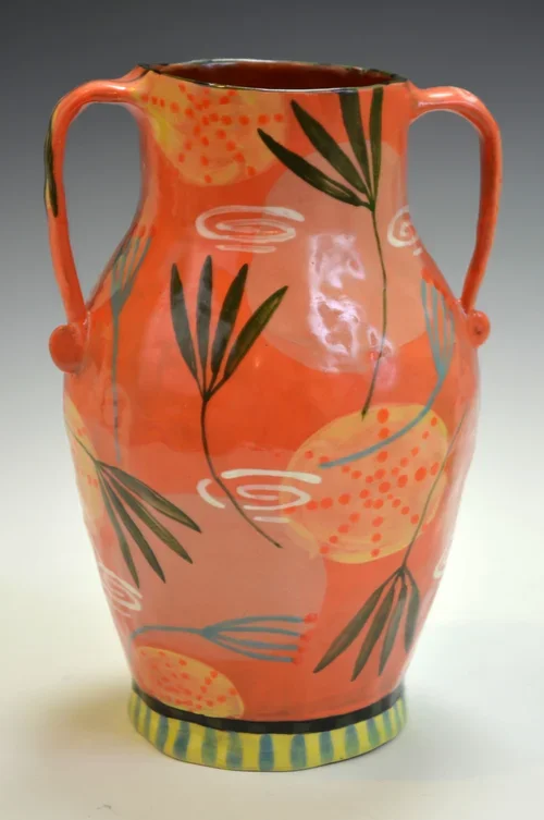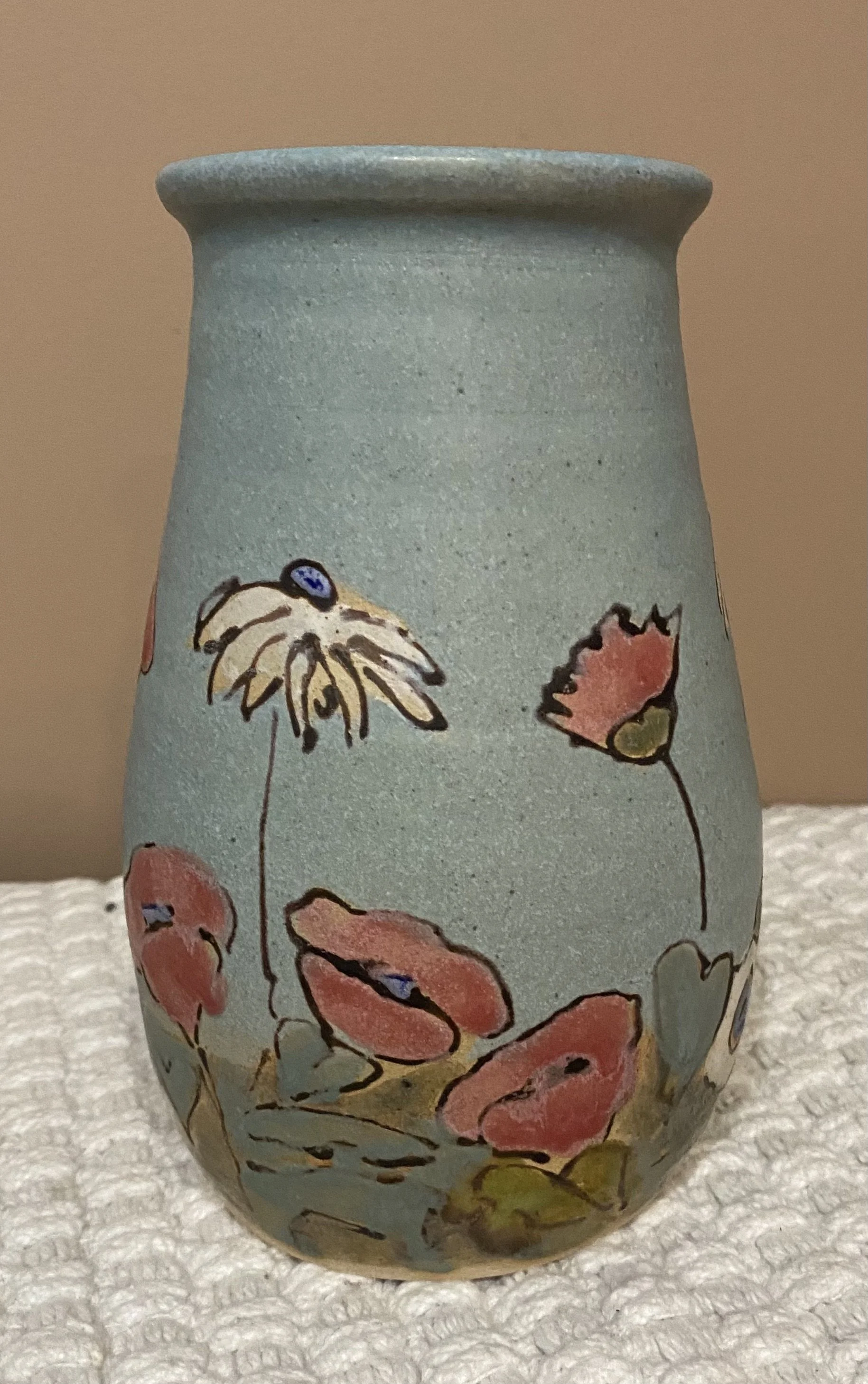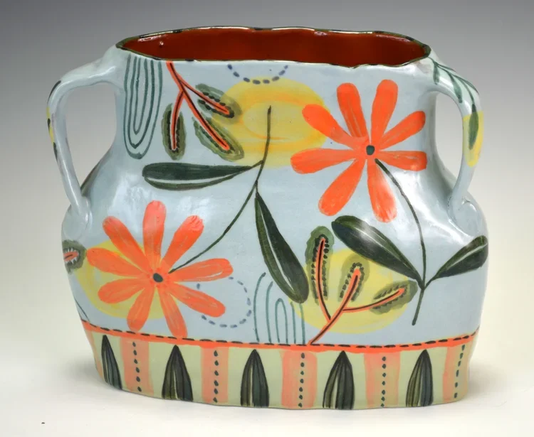 Creating colorful paintings and ceramics using abstracted appropriated forms from nature is what my artwork is. Using traditional techniques to prepare the substrates acknowledges the early Arts and Crafts movement's ideology. William Morris says, "Have nothing in your house that you do not know to be useful or believe to be beautiful." Surrounding the viewer with beautiful colors and peaceful calming forms found in nature is the purpose of this work. My Connection series is about the connections we humans have and need and how we affect one another. It began in the summer of 2020. The circles and squares are the doodles I make on my paper when I sit in meetings or classes taking notes; they help calm me. So I decided to make them big. I hope they help to calm you too.
